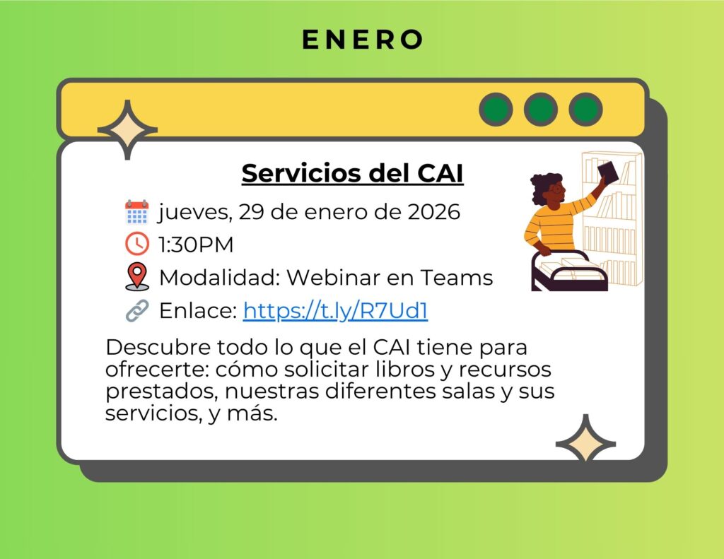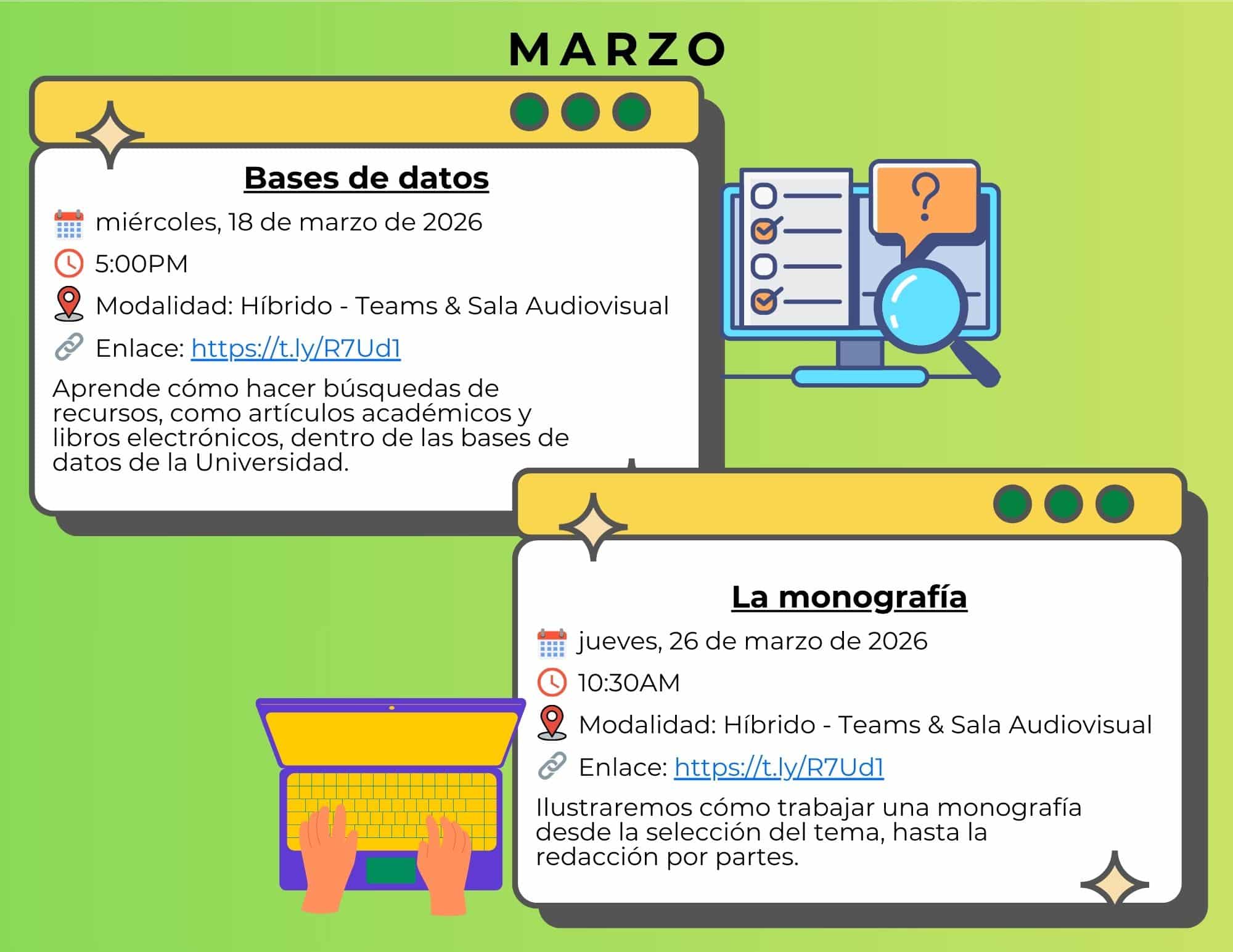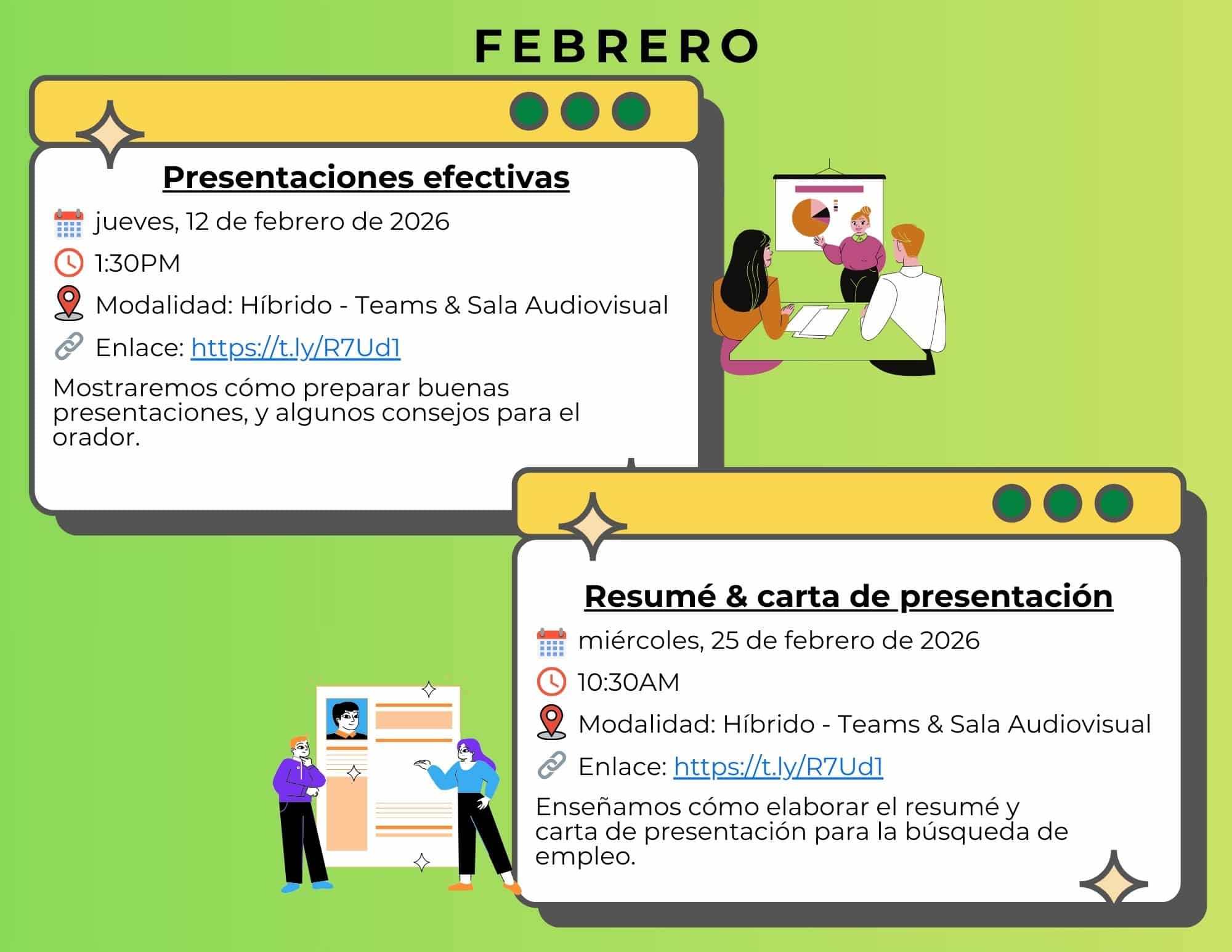 A continuación encontrará los talleres que ofreceremos durante el semestre de enero a mayo 2026. Para conectarse a través de Teams, haga clic en el siguiente enlace: https://t.ly/R7Ud1
