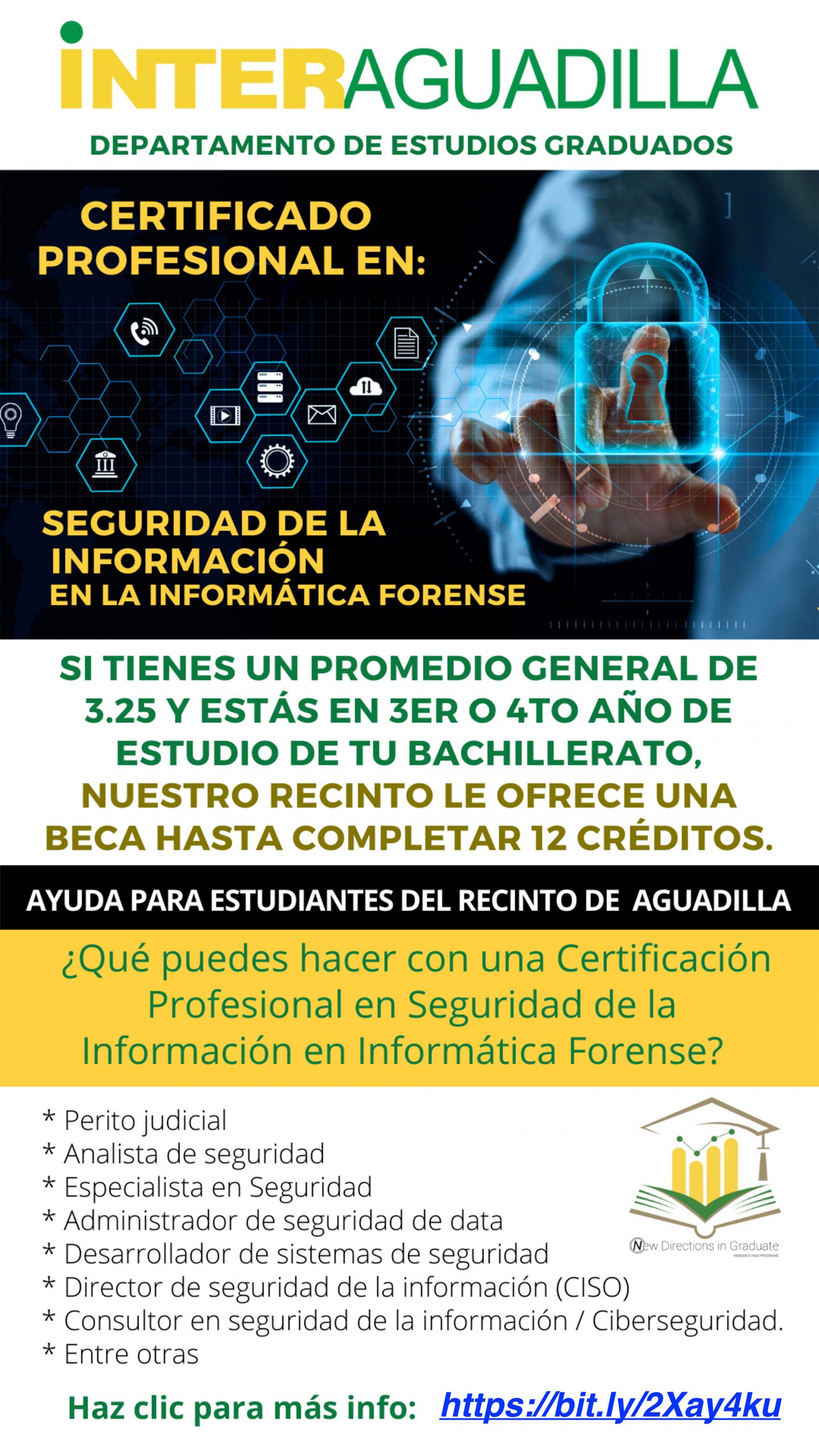 El Certificado Profesional en Seguridad de la InformaciĂłn en Informática Forense tiene como meta la formaciĂłn de un profesional de excelencia que pueda responder de forma efectiva a la rápida evoluciĂłn de la tecnologĂa y contribuya a producir soluciones a los cambios econĂłmicos y sociales en el paĂs y en el mundo. El certificado proporcionará a los estudiantes las competencias necesarias para ser lĂderes en el diseño, la implementaciĂłn, la evaluaciĂłn y la soluciĂłn de problemas de los sistemas de seguridad.