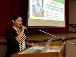 - Conferencia “Cómo realizar un estudio de viabilidad”, por el Dr. José E. Caraballo, martes, 12 de noviembre, 10:30 am. Asistencia: 74 personas. La estudiante emprendedora Diomara Canales fue la maestra de ceremonias.