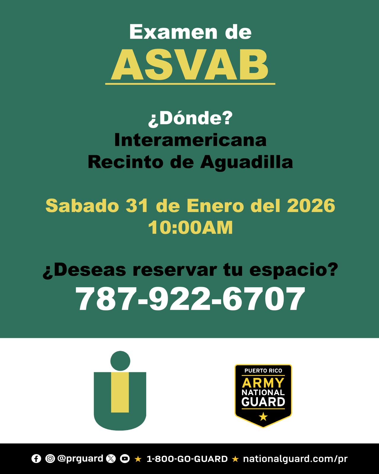 Se estará ofreciendo el Examen de ASVAB en el Recinto de Aguadilla.